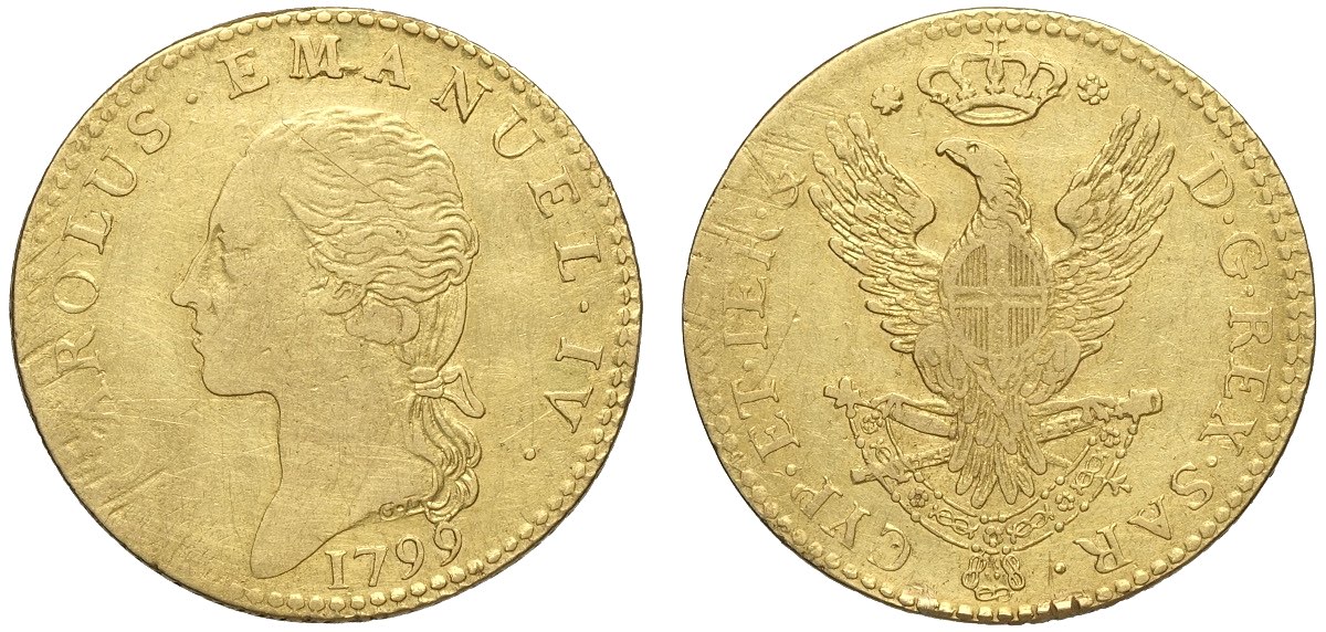 Lotto 138 - Savoia, Carlo Emanuele IV (1796-1800), Doppia 1799, RRR Au ...