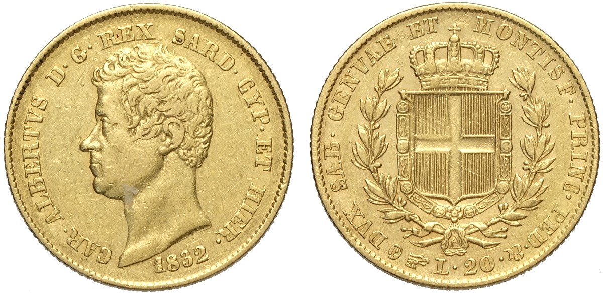 Lotto 155 - Savoia, Carlo Alberto (1831-1849), 20 Lire 1832 Torino C/ ...