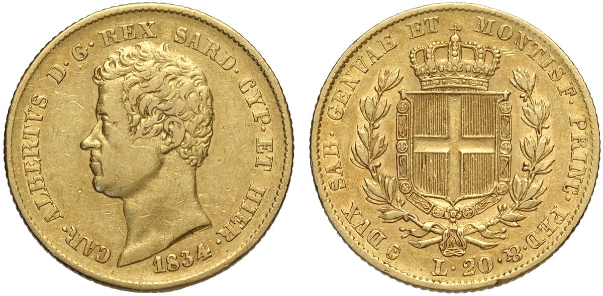 Lotto 156 - Savoia, Carlo Alberto (1831-1849), 20 Lire 1834 senza segno ...