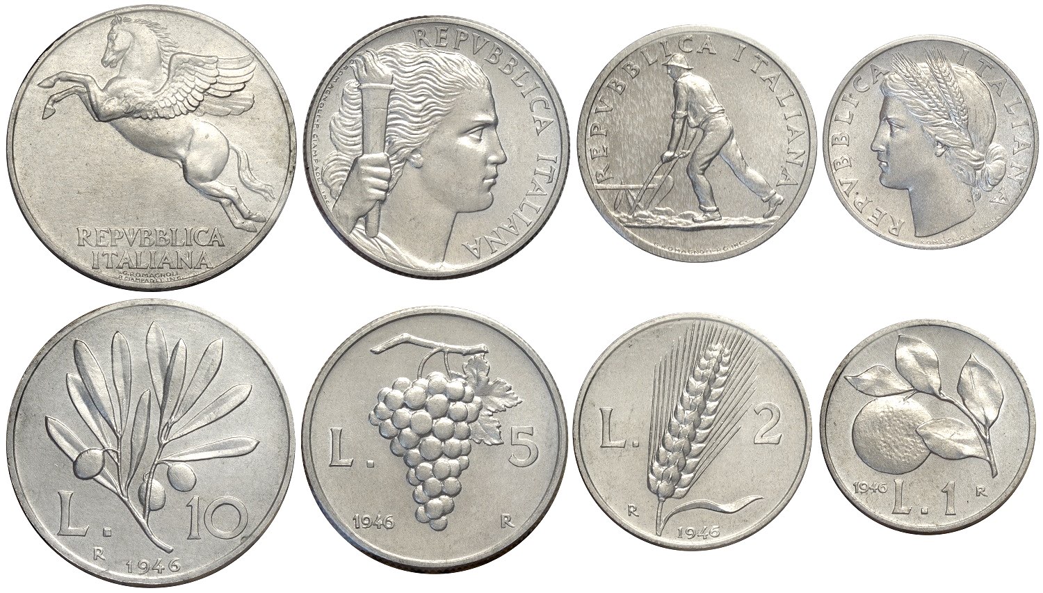 Repubblica Italiana, Monetazione in Lire (1946-2001), Serie 1946. RR Al, Sigillate tutte FDC da E. Tevere