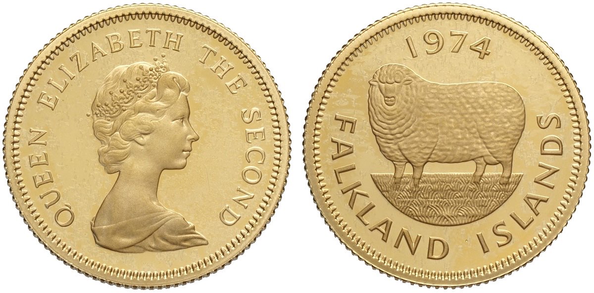 Lotto 424 - Falkland, Elizabeth II (1952-2022), Pound 1974, Au mm 22 ...
