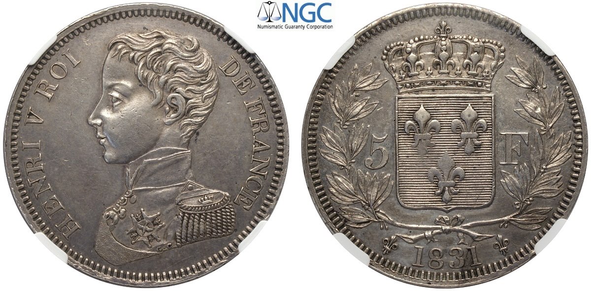 Lotto 436 - France, Henry V Pretender (1820-1833), 5 Francs 1831 ...