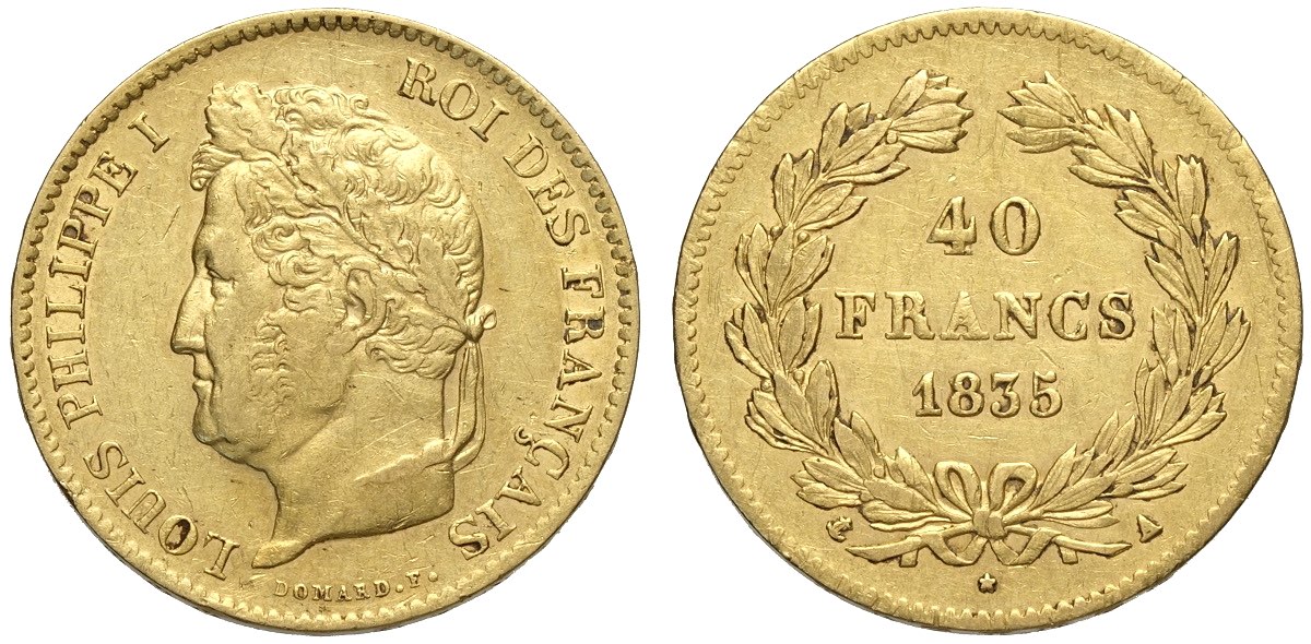 France, Louis Philippe (1830-1848), 40 Francs 1835-A Paris, Au mm 26 BB