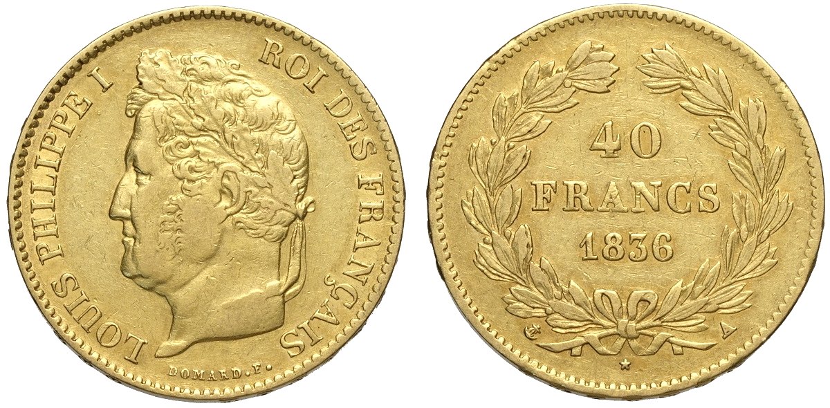 Lotto 444 - France, Louis Philippe (1830-1848), 40 Francs 1836-A Paris, ...