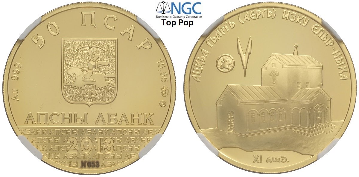 Georgia, Abkhazia (Autonomous Republic), 50 Apsars 2013 Moscow, Fr-Unlisted; KM-Unlisted. Mintage: 99, numbered 053, in slab NGC PF70 Ultra Cameo (cert. 6638548020 Top Pop!)