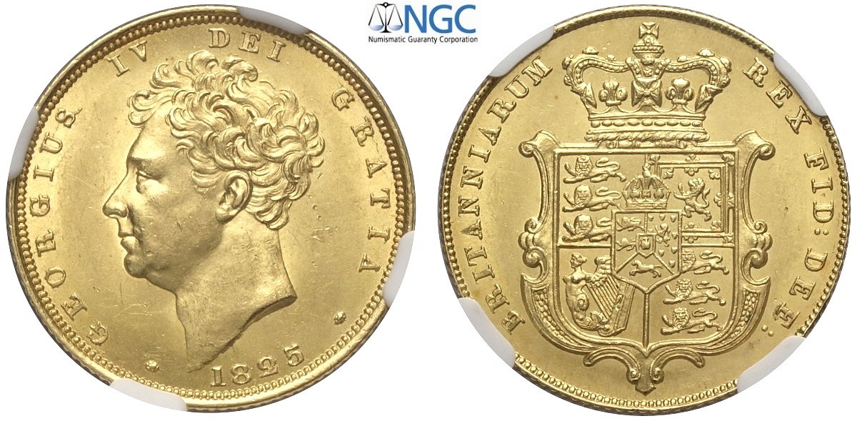 Great Britain, George IV (1820-1830), Sovereign 1825 Bare head, S-3801 Au mm 22 in Slab NGC MS63