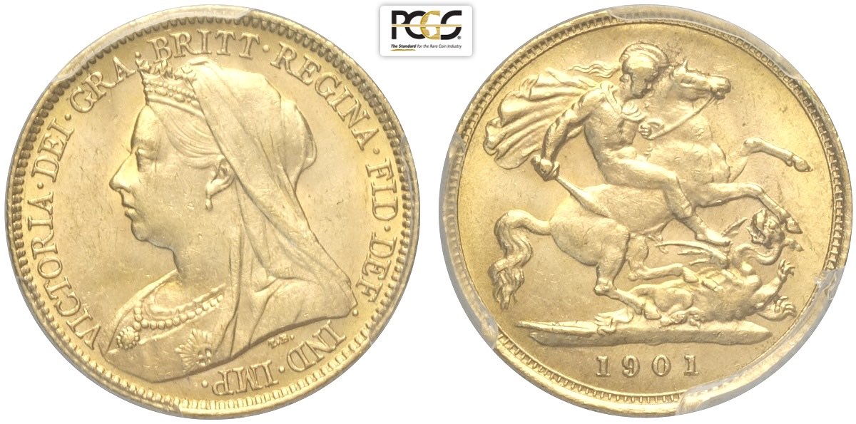 Great Britain, Victoria (1837-1901), Half Sovereign 1901, S-3878 Au mm 19 in Slab PCGS MS63