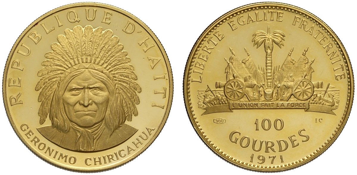 Lotto 509 - Haiti, Republic, 100 Gourdes 1971, KM-93 Au mm 30 g 19,75 ...