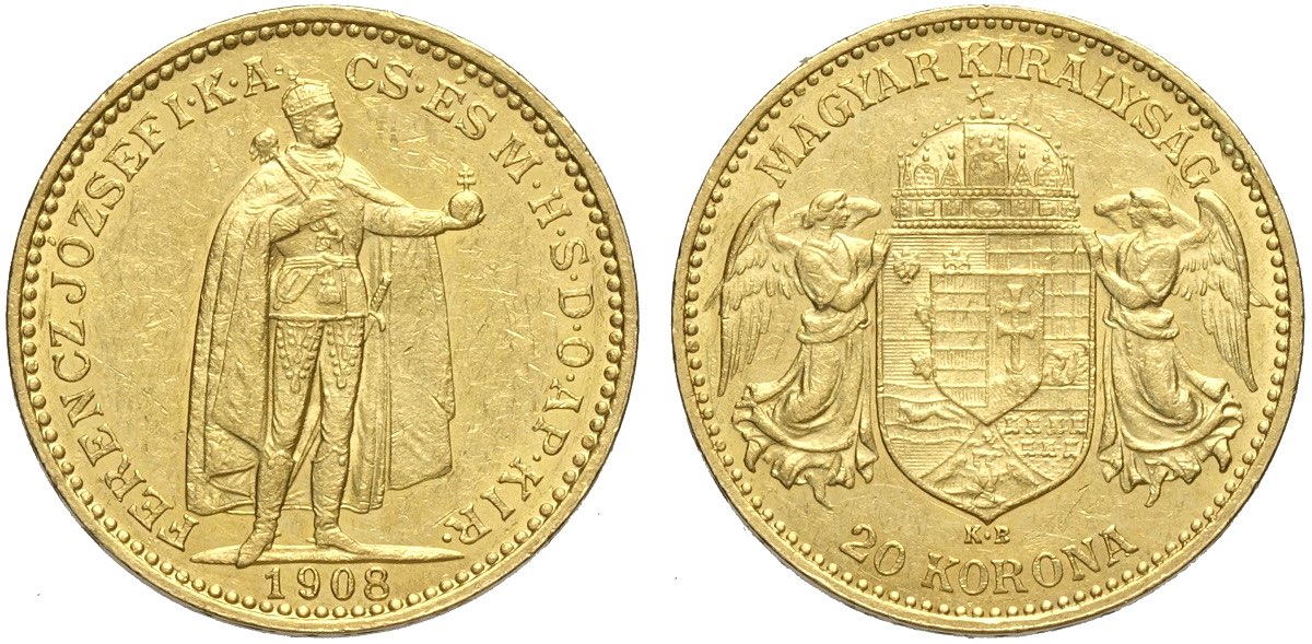 Lotto 511 - Hungary, Franz Joseph I (1848-1916), 20 Korona 1908, Au mm ...