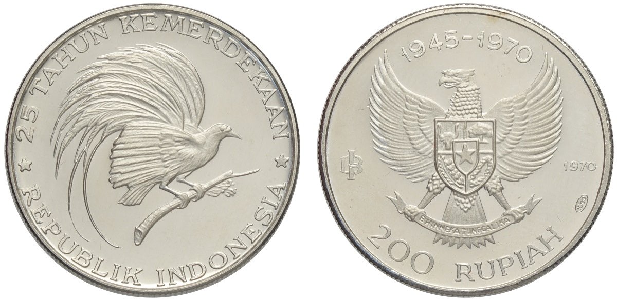Indonesia, Republic, 200 Rupiah 1970, Ag mm 26 Proof