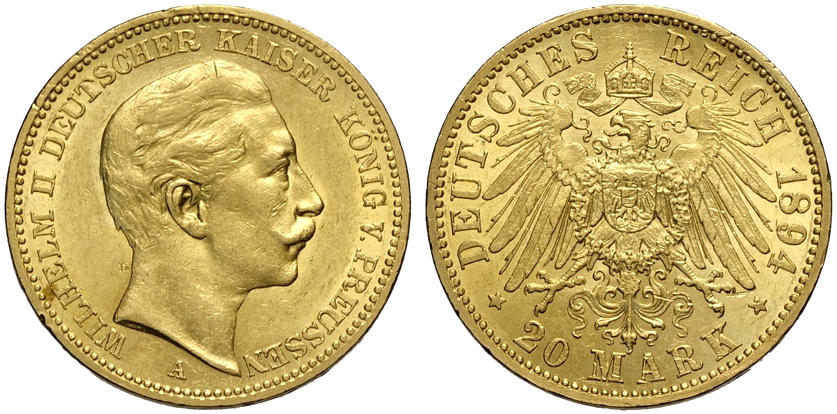 Lotto 490 - Germany Prussia, Wilhelm II (1888-1918), 20 Mark 1894-A ...