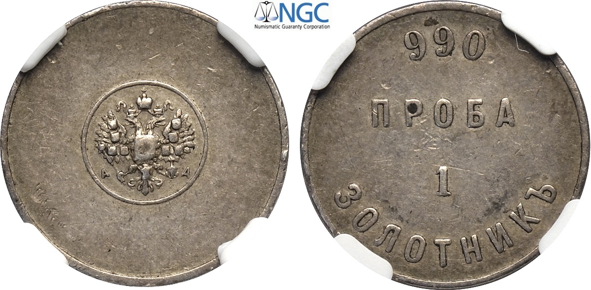 Russia, Alexander III (1881-1894), Zolotnik nd (1885) Silver ingot, Bit-262 Ag 20 mm , in Slab NGC XF40