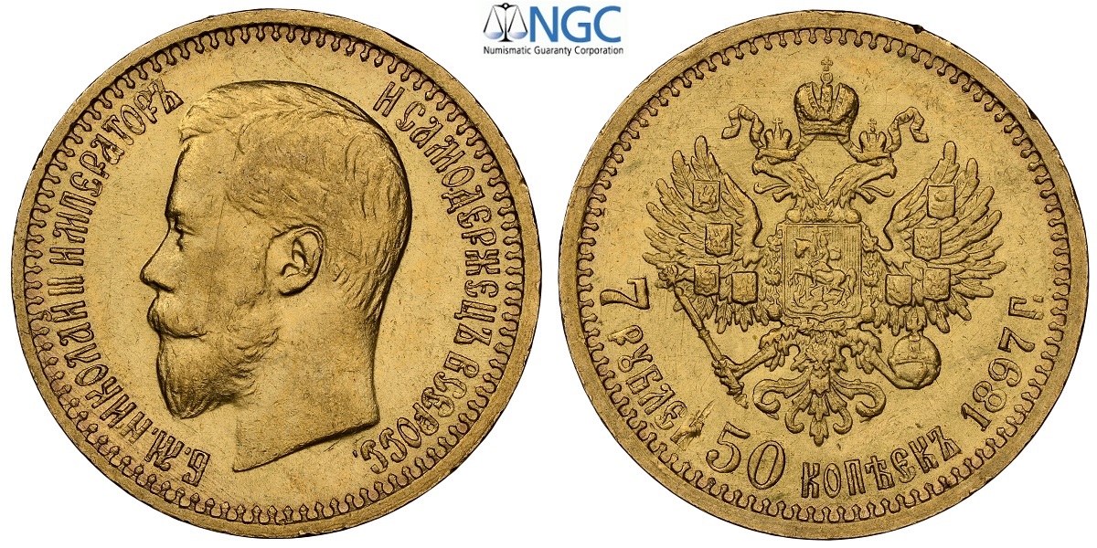 Russia, Nicholas II (1894-1917), 7,5 Roubles 1897, Au 21 mm 6,45 g , in Slab NGC MS61