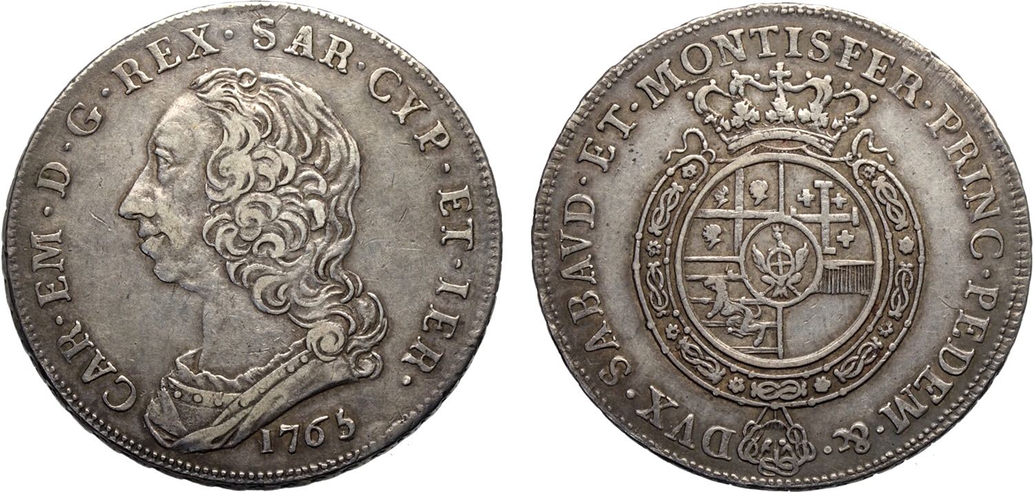 Lotto 249 - Savoia, Carlo Emanuele III (1755-1733), Scudo nuovo 1765, ...