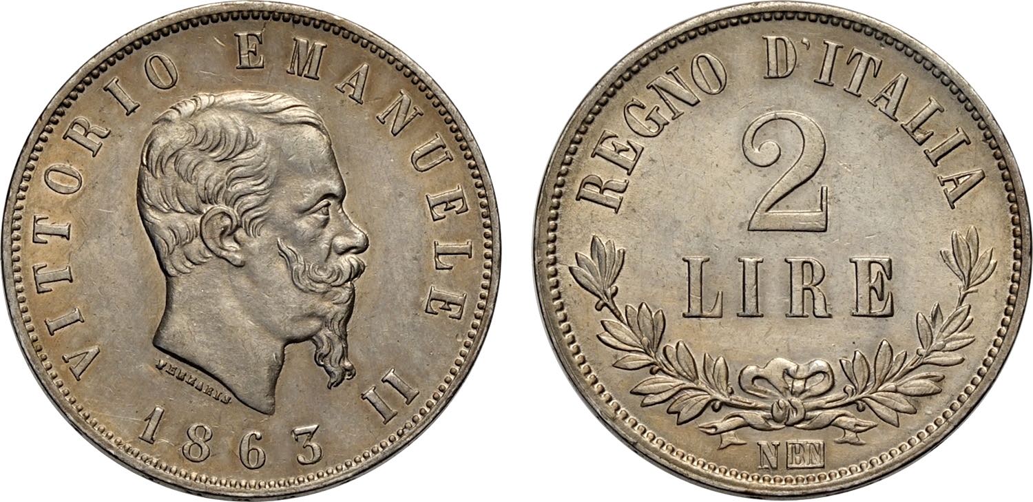Regno d'Italia, Vittorio Emanuele II (1861-1878), 2 Lire 1863 Napoli "valore", Ag 27 mm, impercettibile pulitura, SPL-FDC
