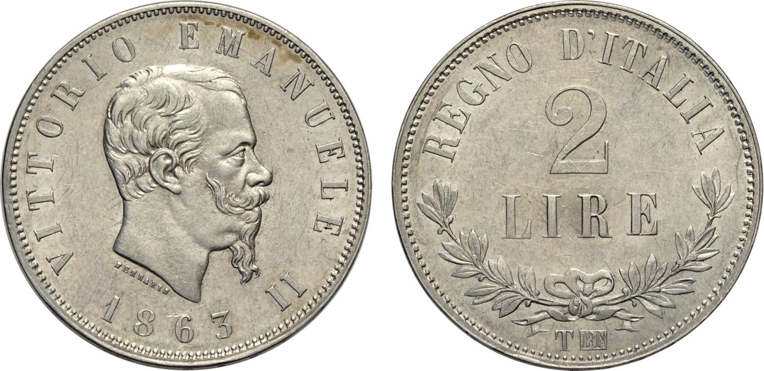 Regno d'Italia, Vittorio Emanuele II (1861-1878), 2 Lire 1863 Torino "valore", Rara Ag 27 mm, SPL