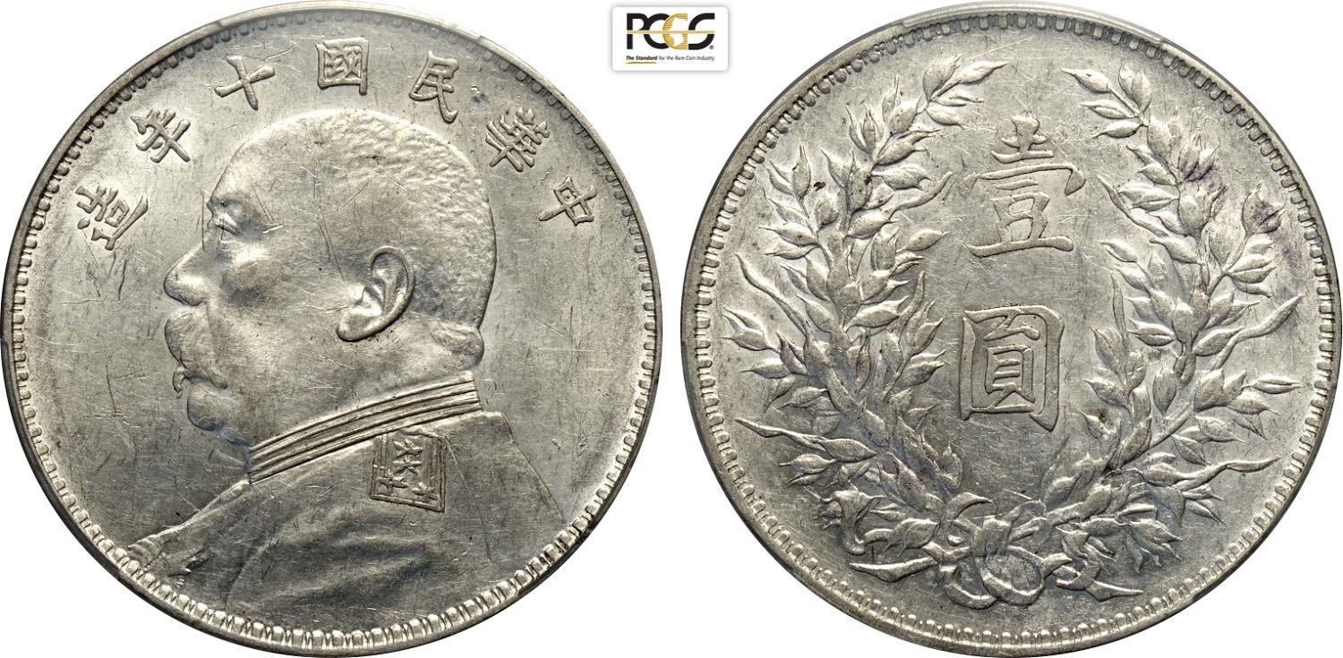 China, Republic (1912-1949), Dollar year 10 (1921), L&M-79 NC, Ag 39 mm 26,40 g, in Slab PCGS AU53