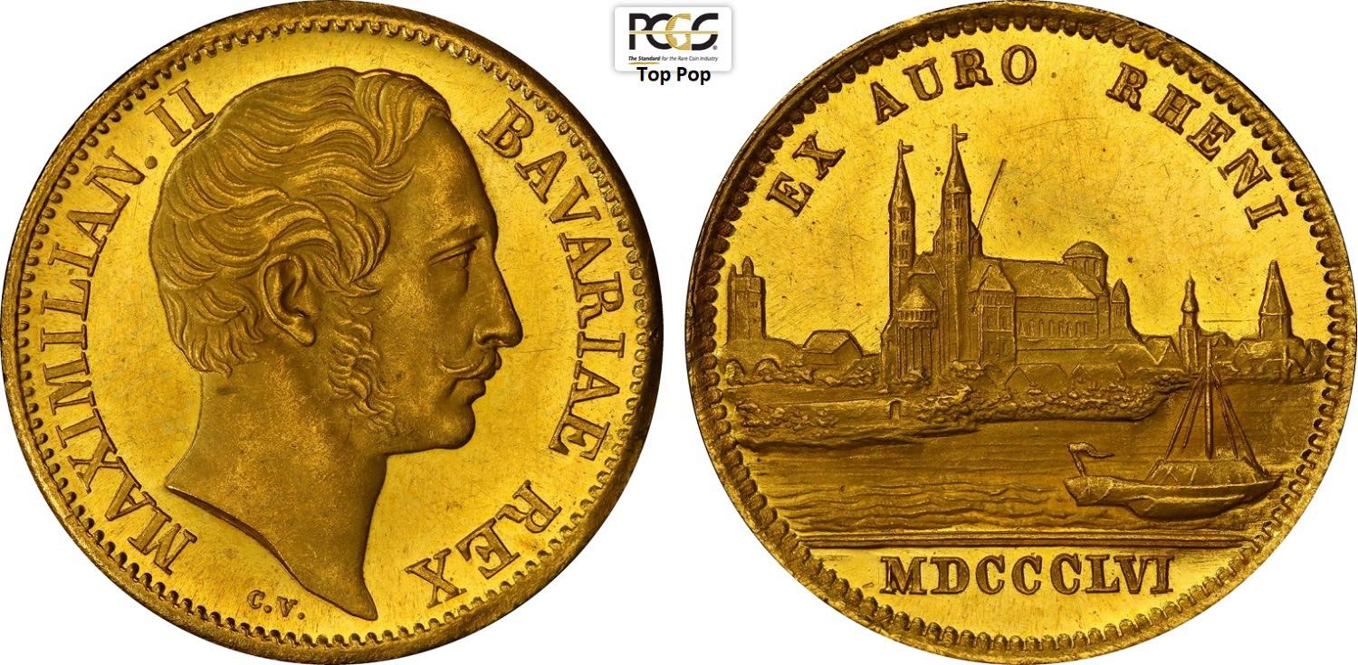 Germany Bavaria, Maximilian II (1848-1864), Ducat 1856 Rhine river, Munich Mint, Fr-278 Au 20 mm 3,49 g, Rheindukaten were struck from Gold found in the Rhein river, in Slab PCGS MS62 Top Pop! (cert. 48030072)