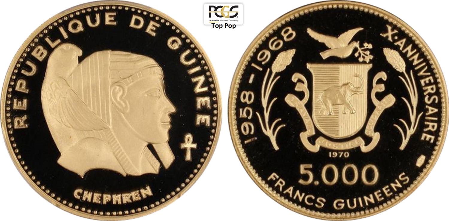 Guinea, Republic (1958-), 5000 Francs 1970 Chephren, Mintage: 675, KM-34 Au 33,5 mm 20 g, in Slab PCGS PR69 Deep Cameo Top Pop! (cert. 44978741)