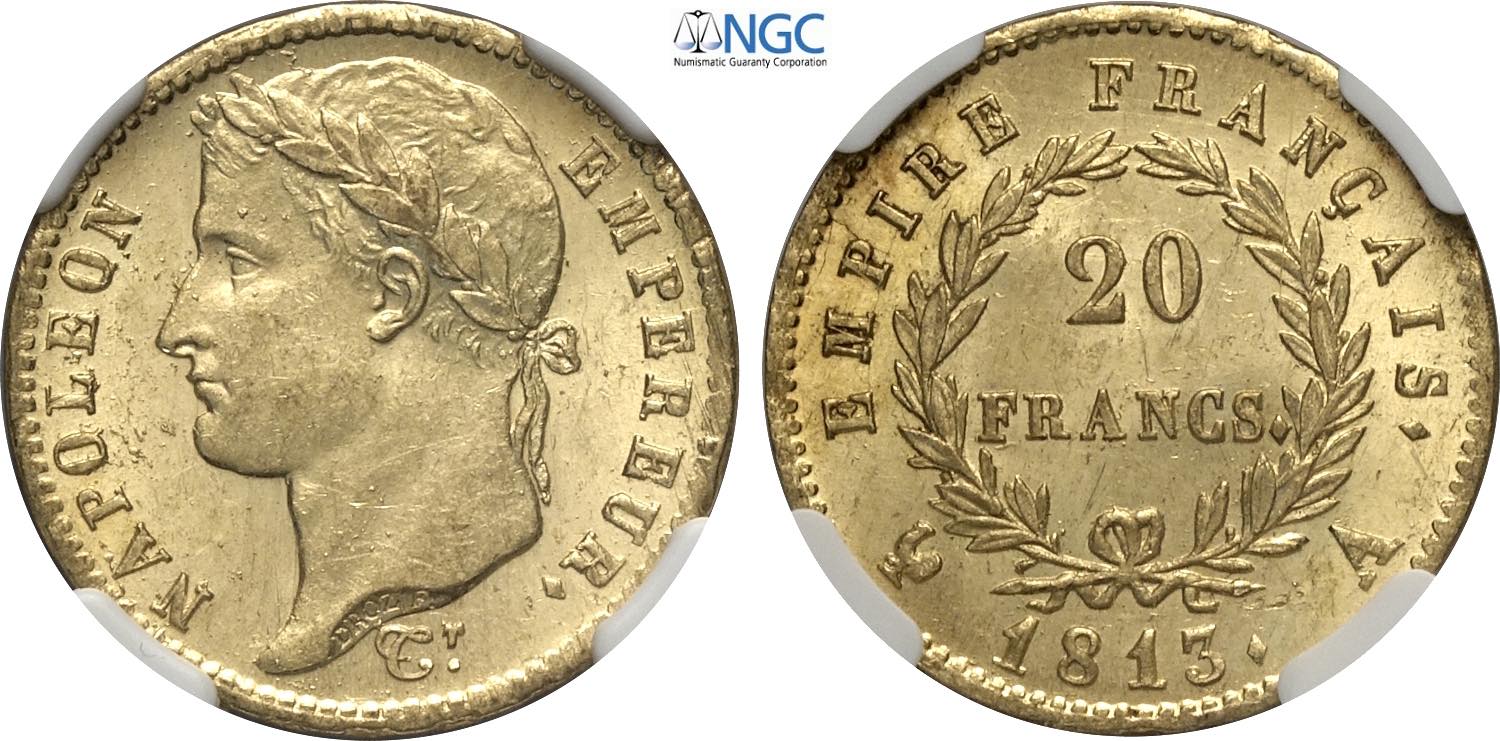 France, Napoleon I (1799-1814), 20 Francs 1813-A, Paris mint, Au 21 mm, 6,45 g, in Slab NGC MS63