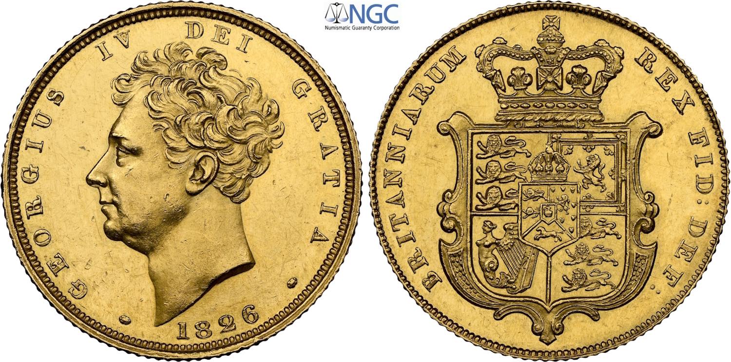 Great Britain, George IV (1820-1830), Proof Sovereign 1826, London mint, Au 22 mm 7,99 g, in Slab NGC PF61