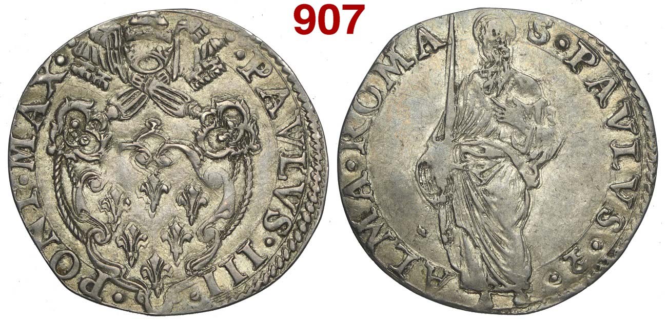 Lotto 907 - Roma - Paolo III (1534-1549) - Giulio - Munt. 56 AG g. 2,89 ...