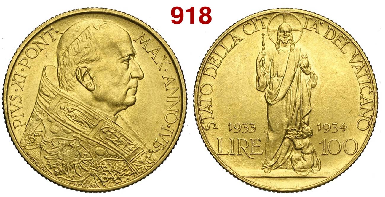 Lotto 918 - Vaticano - Pio XI - 100 Lire 1933-1934 - AU g. 8,80 - SPL