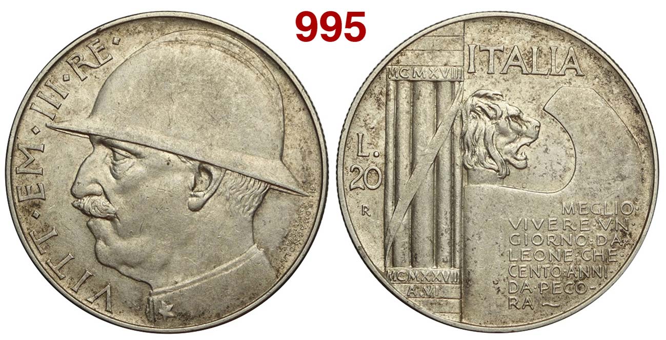 Lotto 995 - Regno d'Italia - Vittorio Emanuele III - 20 Lire 1928 ...
