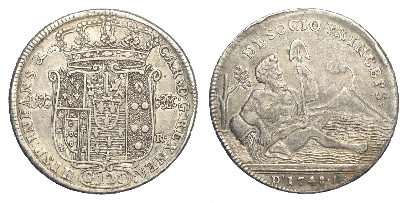 Napoli - Carlo di Borbone - Piastra 1748 - Ag mm 39 g 25,10 - BB+