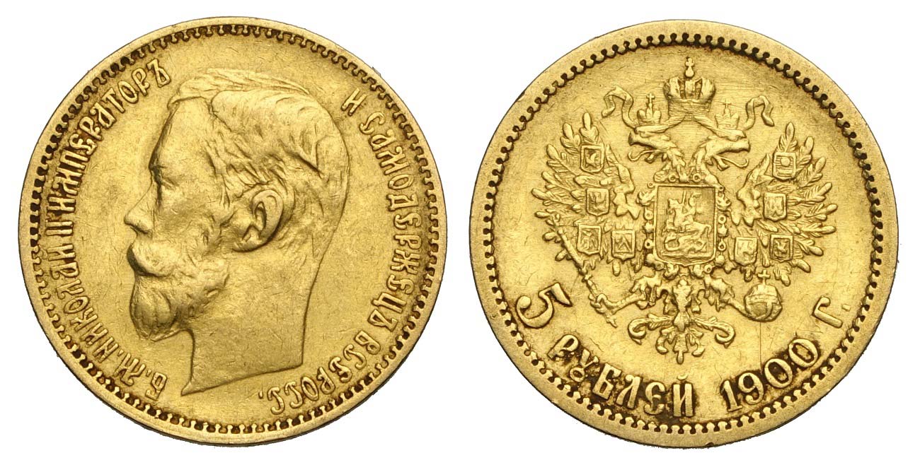 Russia - Nicholas II - 5 Roubles 1900 - Au mm 18,4 - buon BB