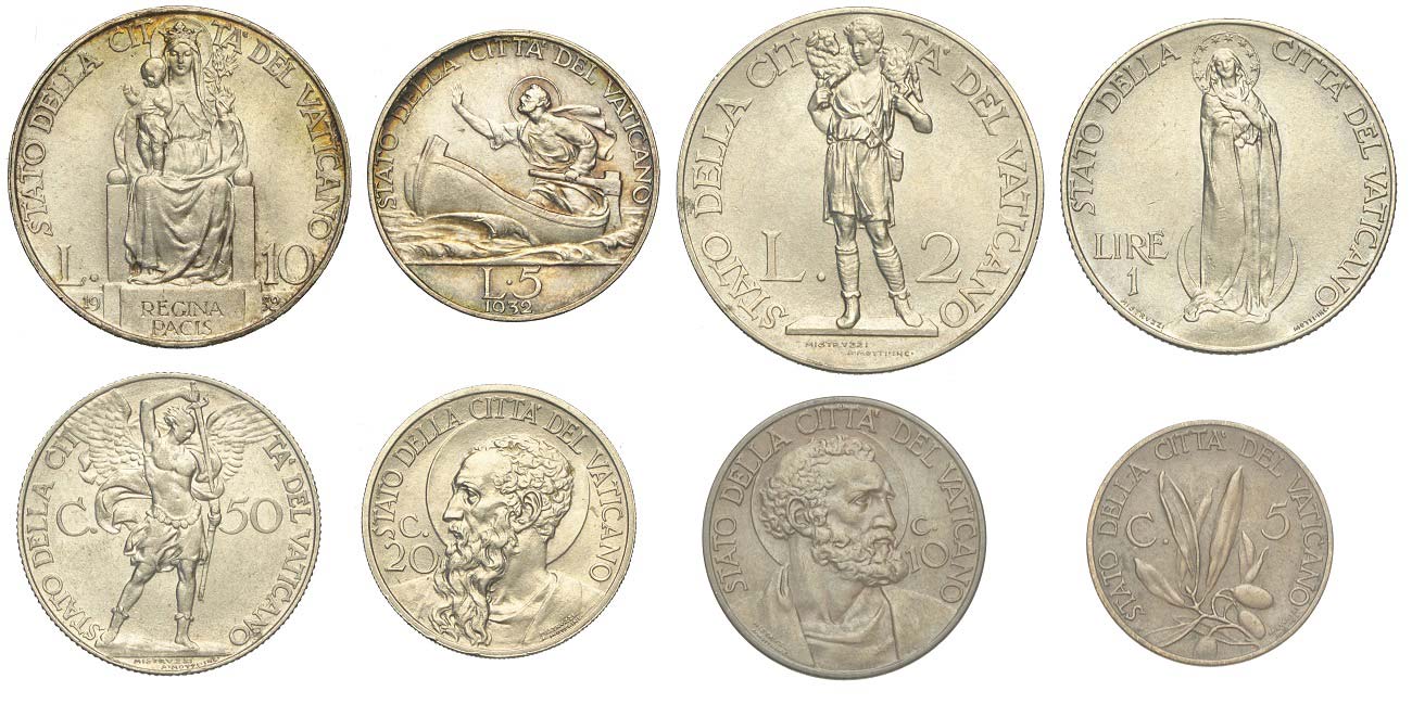 Roma, Pio XI, Serie 1932 (8), Ag, Ni, Cu, FDC