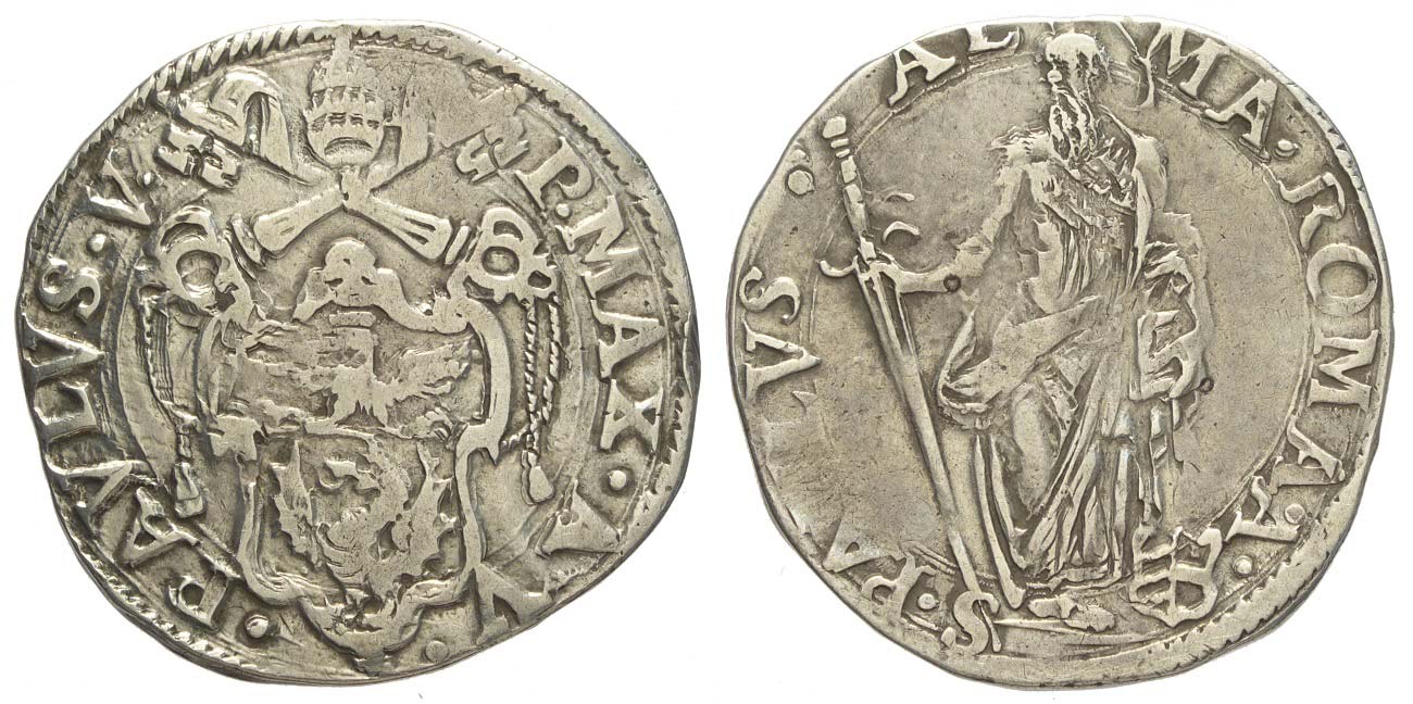 Roma, Paolo V (1605-1621), Testone, Ag mm 29 g 9,42 q.BB