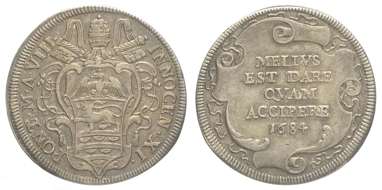 Roma, Innocenzo XI, Testone 1684, Ag mm 32 g 9,09 bella patina BB-SPL
