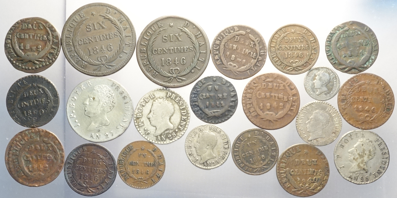 Haiti, Lotto di 21 monete 1827-1846, segnaliamo: 6 Centimes 1846 AN 43 KM-28 SPL