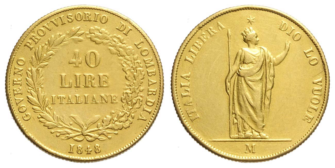 Lotto 32 - Milano, Governo Provvisorio, 40 Lire 1848, Rara Au mm 26, ...