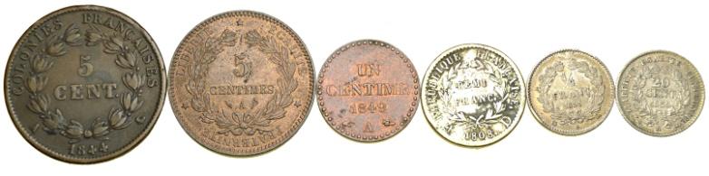 ½ Franco 1808 D BB ; ¼ Franco 1831 K q.SPL ; 20 Centimes 1850 A q.SPL ; 5 Centimes 1844 A BB+ ; 5 Centimes 1897 A q.FDC ; Centime 1849 A q.FDC