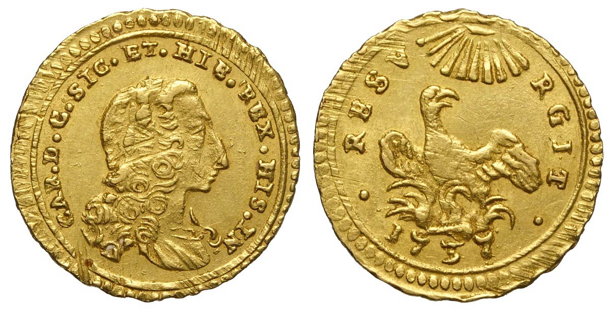 Lotto 115 - Palermo, Carlo di Borbone, Oncia 1737, Au mm 22 g 4,38 ...