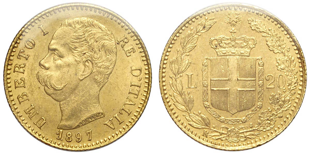 Lotto 290 - Regno d'Italia, Umberto I, 20 Lire 1897, Rara Au mm 21 ...