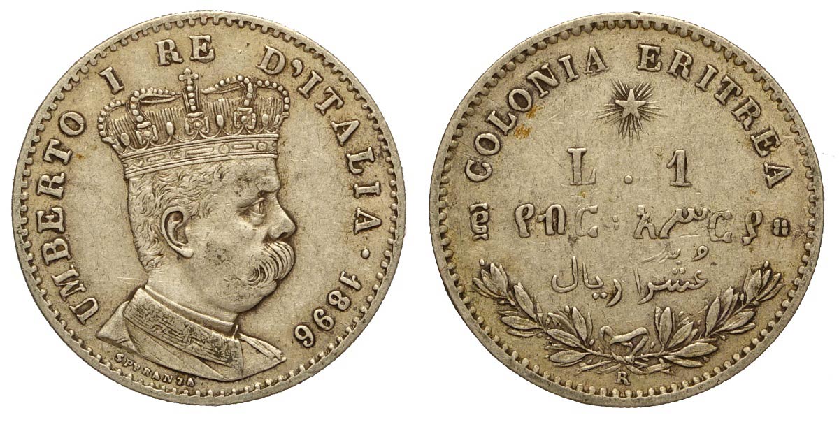 Lotto 297 - Regno d'Italia, Umberto I Colonia Eritrea, Lira 1896, RR Ag ...
