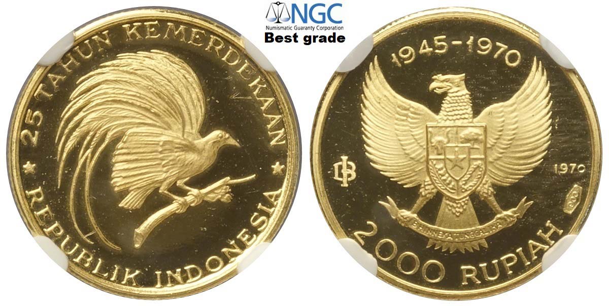 Indonesia, Republic, 2000 Rupiah 1970, Au g 4,93 in slab NGC PF-69 (best grade of NGC)