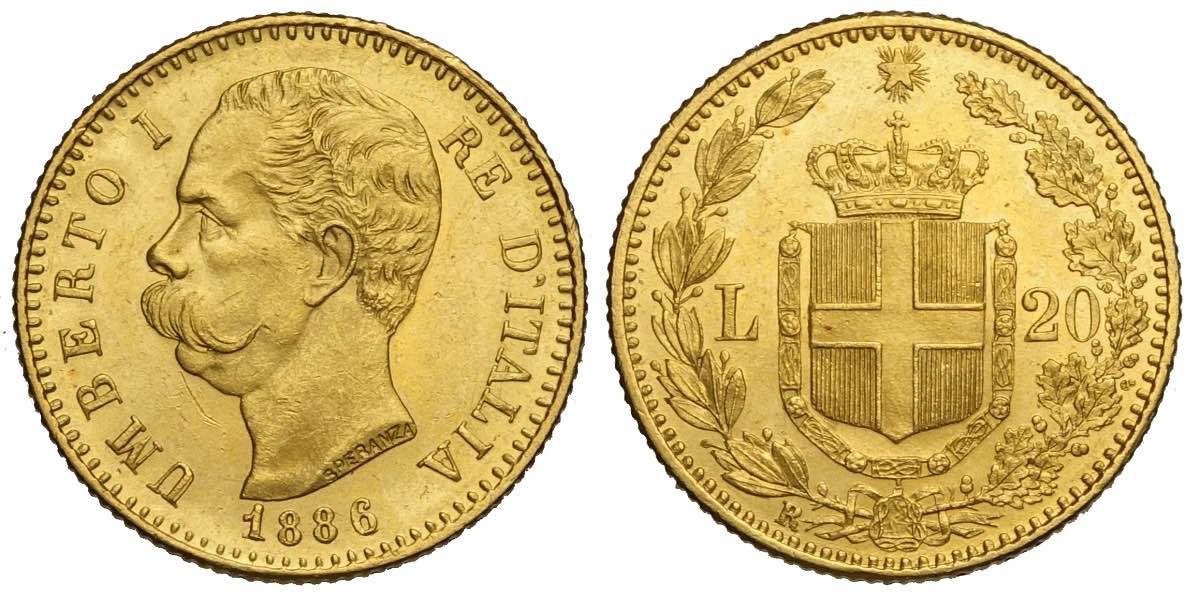 Lotto 175 - Regno d'Italia, Umberto I, 20 Lire 1886, Au mm 21 ...