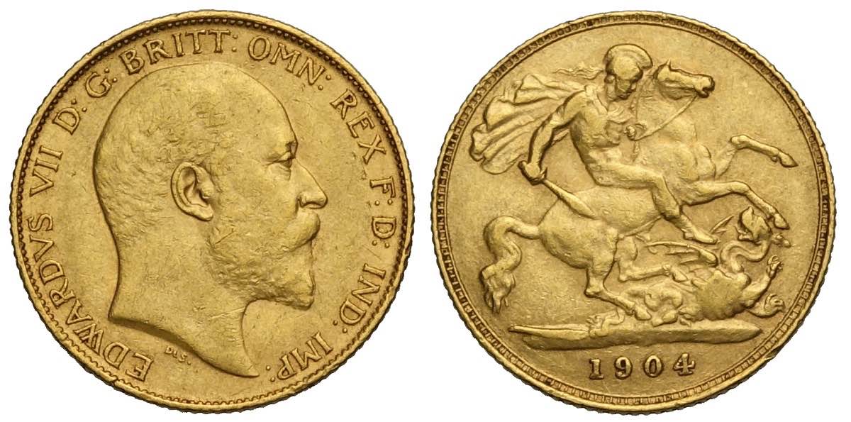 Great Britain, Edward VII, Half Sovereign 1904, Au mm 19 BB